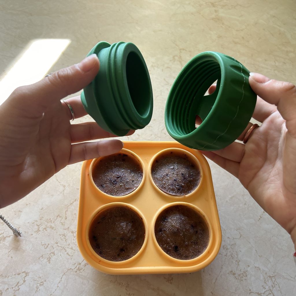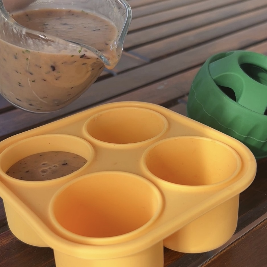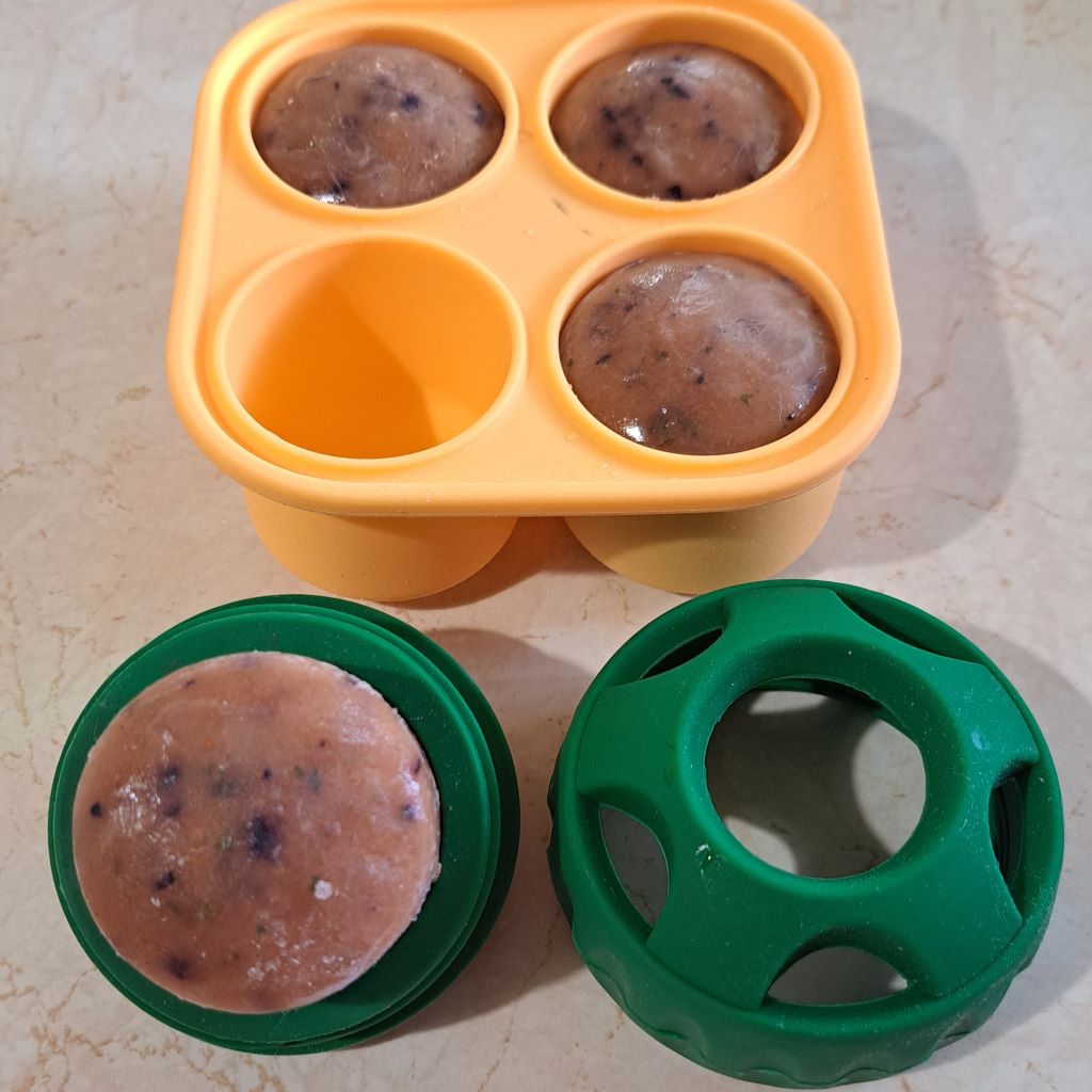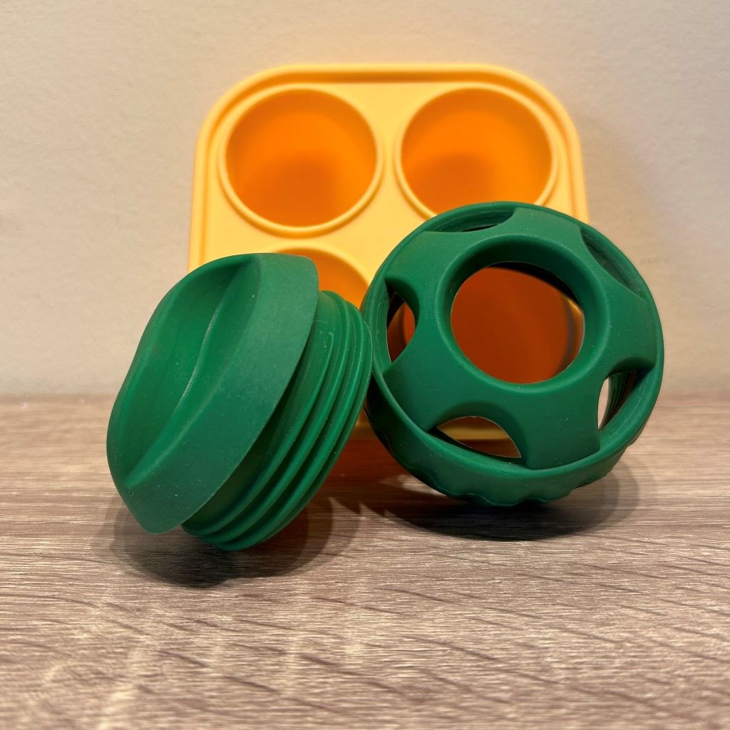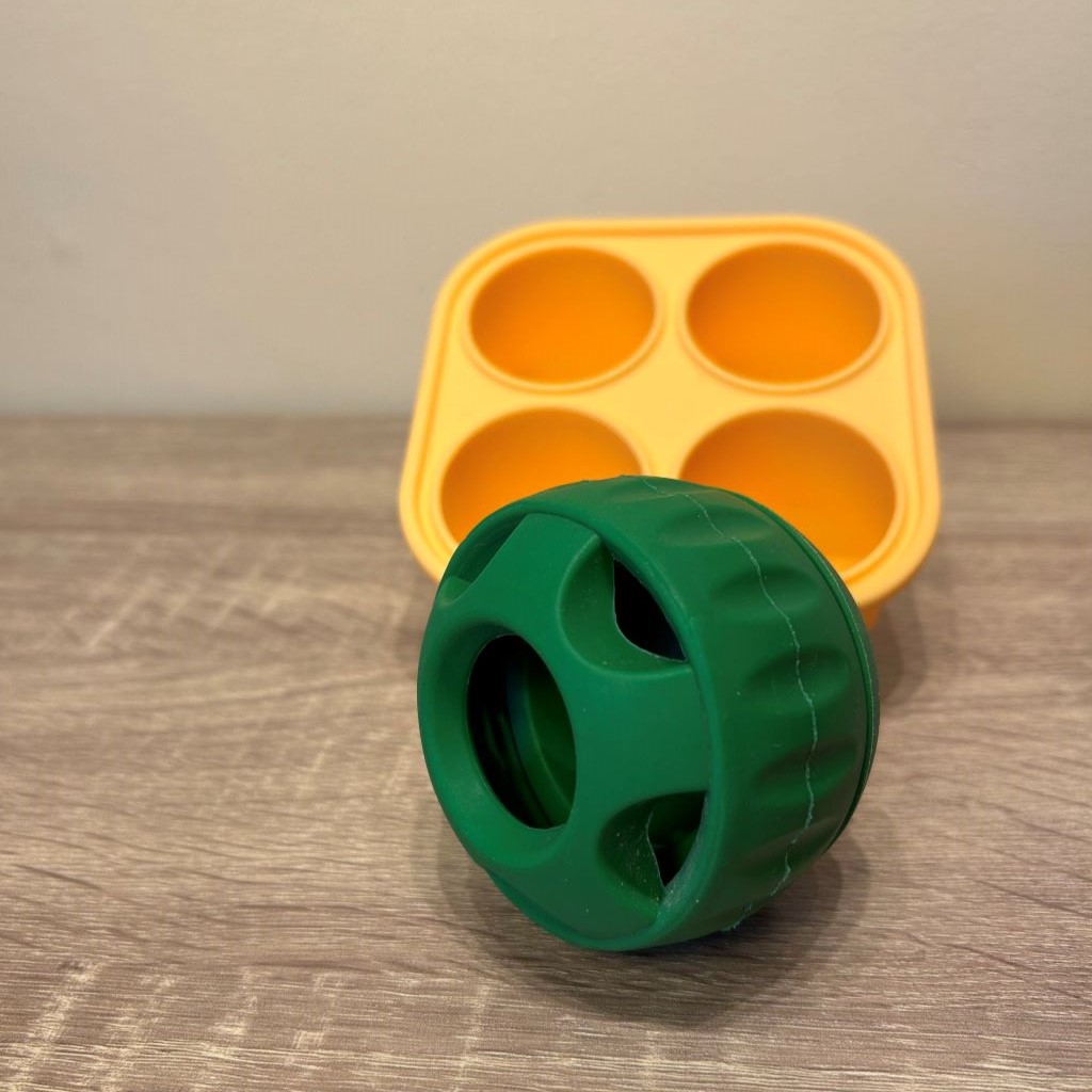 A fagyasztótálca segítségével egyszerre négy golyót tudsz készíteni, így a nap folyamán több alkalommal is adhatsz kedvencednek a hűsítő finomságból.