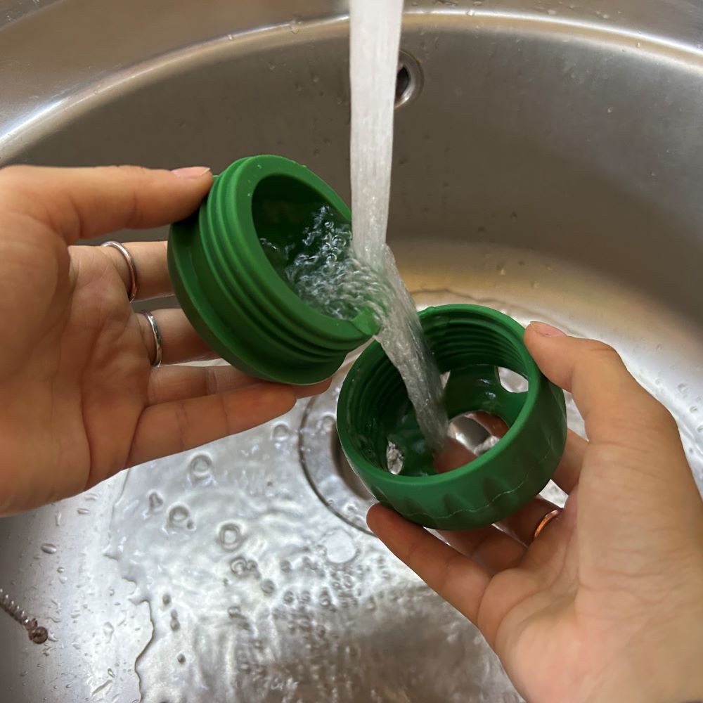 Ha kiürült, nyisd ki és öblítsd ki a csap alatt, vagy tedd a mosogatógépbe, majd töltsd újra.